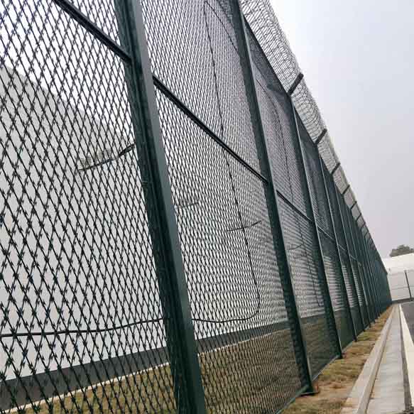 3、在監獄護欄網的橫向加裝四道折彎加強筋,在整體成本增加不多,同時使網面強度和美感顯著增加,是目前國內外之一。