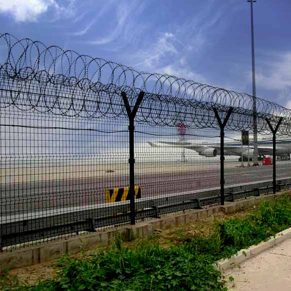 場,軍事基地等高安全場所。(如果在機場圍欄網頂部加裝刀片刺絲、刀片刺繩后又很好的增強了安全防護性能。)