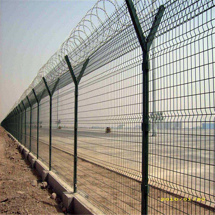 機場護欄網因為具有美觀、實用、方便運輸和安裝等特點,目前被社會普遍應用。而且如果能在機場護欄網頂部加上刀片刺絲或者刀片刺繩后又進一步的增強了安全防護性能。普通的機場護欄網大多都是采用電鍍、熱鍍、噴塑、浸塑等防腐形式,此方法具有很好的防老化、防曬等特點。