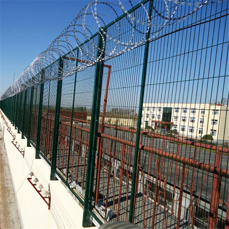 監獄防護網是非常重要的監獄安全防護設施,由焊接鋼絲網加蛇腹形刀刺網組合而成。監獄防護網具有結構新穎、堅固緊密、網面平整、網孔均勻、刀鋒銳利、防攀爬、抗腐蝕性強、堅固耐用、美觀大方、刀鋒銳利、防攀爬、抗強風、抗沖擊、抗剪切、抗腐蝕等優異特點等特點。建設于監獄的內外墻地面及高墻之上,網墻內側或頂部加裝蛇腹形刀刺網,形成一道高不可攀、難以逾越的隔離障礙。配合高壓打擊電網、各種監控報警設備確保監獄安全萬無一失。