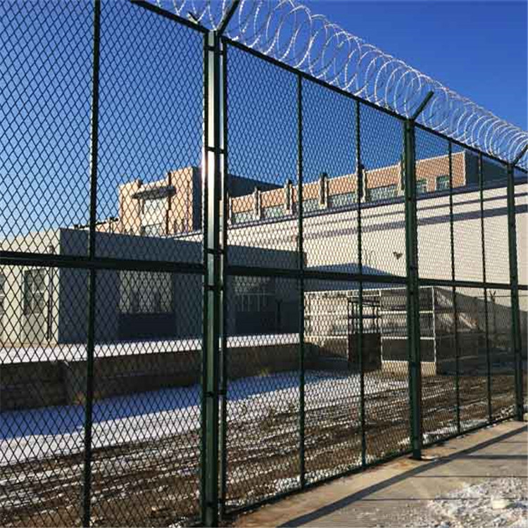 2:監獄鋼網墻用在放風場 警戒線內就需要做成2.5-5m左右的高度。上部加Y型柱,有效防止犯人的逃脫,因為上部會安裝刀片刺繩,對人也起到恐嚇的作用。