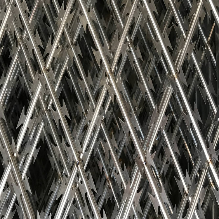 刀片刺繩也稱為刀片刺絲、刀片刺網(wǎng),是一種新型護(hù)欄網(wǎng)產(chǎn)品。它具有嚇阻效果好、美觀、施工便利,經(jīng)濟(jì)實(shí)用等優(yōu)異特點(diǎn)。主要用于園林公寓,機(jī)關(guān)單位,監(jiān)獄,哨所,邊防等的圈禁防護(hù)。刀片刺網(wǎng)由熱鍍鋅鋼板或不銹鋼薄板沖壓出尖銳的刀片狀,高張力鍍鋅鋼絲或者不銹鋼絲做芯線組合而成的阻絕器材。由于刺網(wǎng)造形獨(dú)特不易觸摸,因而能達(dá)到極好的防護(hù)隔離效果。產(chǎn)品的主要材質(zhì)有鍍鋅板和不銹鋼板。