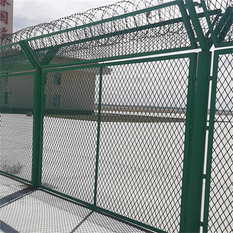 看守所加高圍墻網 又稱作“Y型安全防御護網”和機場護欄網通用,是由V型支架立柱,加強型焊接片網,安全防盜連接件和熱鍍鋅刀片刺籠組成強度和安全防御性級別很高。近年來,被廣泛應用在監獄,軍事基地等高安全場所。注:如果在監獄護欄網頂部加裝刀片刺絲、刀片刺繩后又很好的增強了安全防護性能。采用電鍍、熱鍍、噴塑、浸塑等防腐形式,具有很好的抗老化、抗曬、耐候等特點。其產品造型美觀、花色多樣,既起到圍欄作用,又起到美化作用。由于具有安全性高、防攀爬能力好,網片連接方式采用特制SBS緊扣件,有效防止人為的破壞性拆卸,橫向四道折彎加強筋,使網面強度顯著增加。