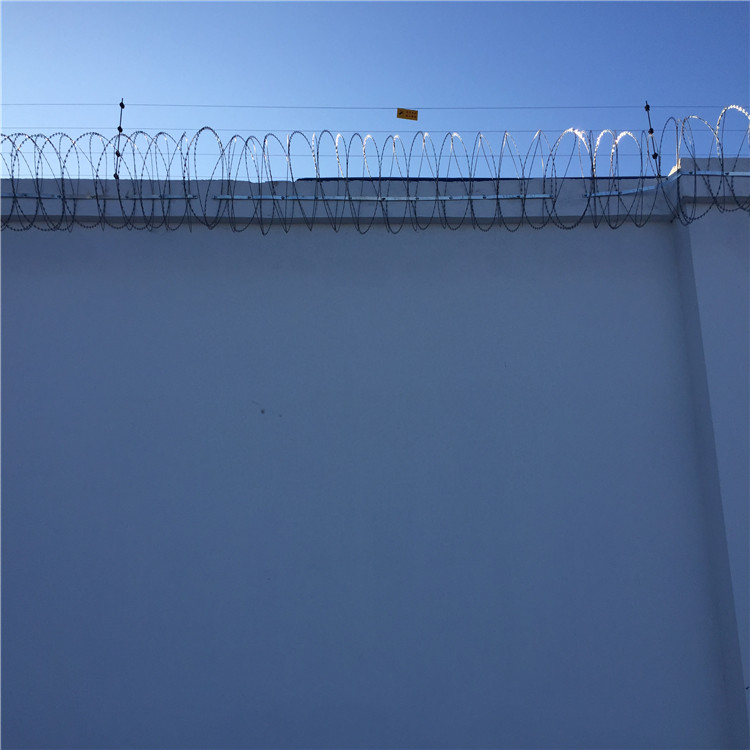 刀片刺繩防護(hù)網(wǎng)是一種新型防護(hù)網(wǎng)。品具有嚇阻效果好.美觀.施工便利.經(jīng)濟(jì)實(shí)用等優(yōu)異特點(diǎn)。刀片刺繩防護(hù)網(wǎng)主要用于園林公寓.機(jī)關(guān)單位.監(jiān)獄.哨所.邊防等的圈禁防護(hù)。刀片刺繩防護(hù)網(wǎng)由銳利尖角鍍鋅鋼板或不銹鋼薄板做刀片,高張力鋼絲做芯線組合而成的阻絕器材。由于刀片刺繩防護(hù)網(wǎng)造形獨(dú)特不易觸摸,因而能達(dá)到比較好的防護(hù)隔離效果。直線形刀片刺網(wǎng)由刀片型直線刺網(wǎng)交叉焊接成型,可用于防盜窗、高速護(hù)欄、隔離柵。施工迅速、效果顯著。刀片刺繩防護(hù)網(wǎng),有多種架設(shè)方式可供選擇,施工迅速,既省經(jīng)費(fèi),又可達(dá)到嚇阻的效果。