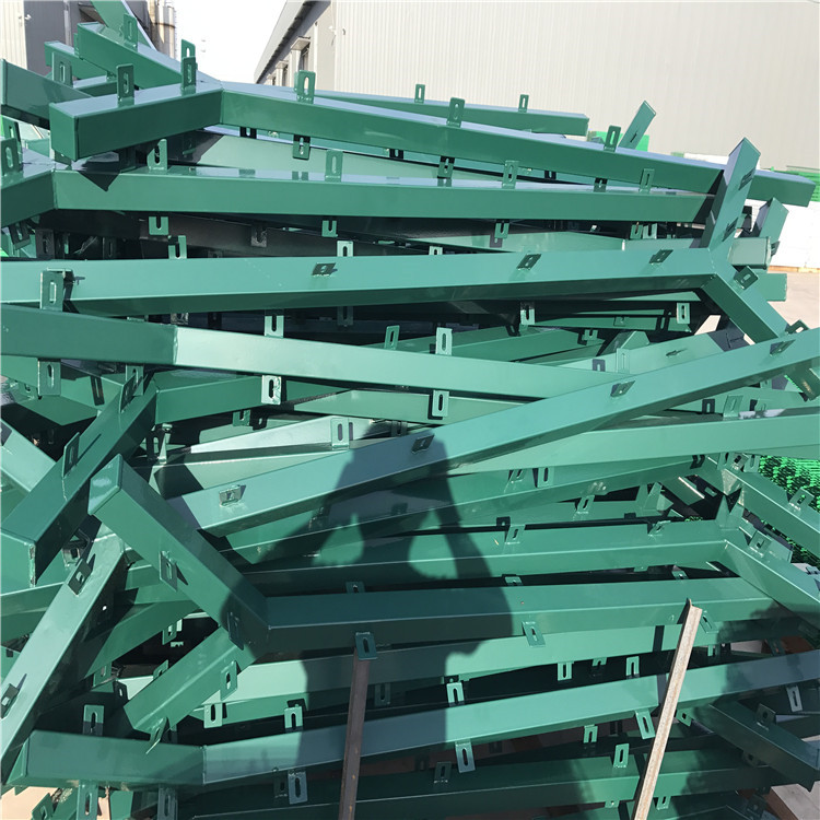 機場鋼筋網圍界立柱采用Q235好的鍍鋅鋼管加工而成,其矩形獨特的斷面結構決定了立柱抗壓面的高強度,金屬網片與鋼管立柱采用防盜螺栓、金屬四角扣片等附件連接固定,安裝方便快捷,鐵絲網片橫向軋制波浪三角形折彎,整體網面強度有顯著提升,美觀性首屈一指,機場圍界具有較強的防沖擊性能和抗剪切破壞的能力,為有效防止行人跨越,機場圍界頂部6道刺絲支撐起V型區,其上安裝因定500mm或600mm刀刺滾籠,具有防護、威懾效果,機場圍界安裝時現場挖坑,澆筑混凝土固定,埋深300mm,根據地形情況施工時做地梁回固,確保機場圍界隔離網的牢固性和防護性能。