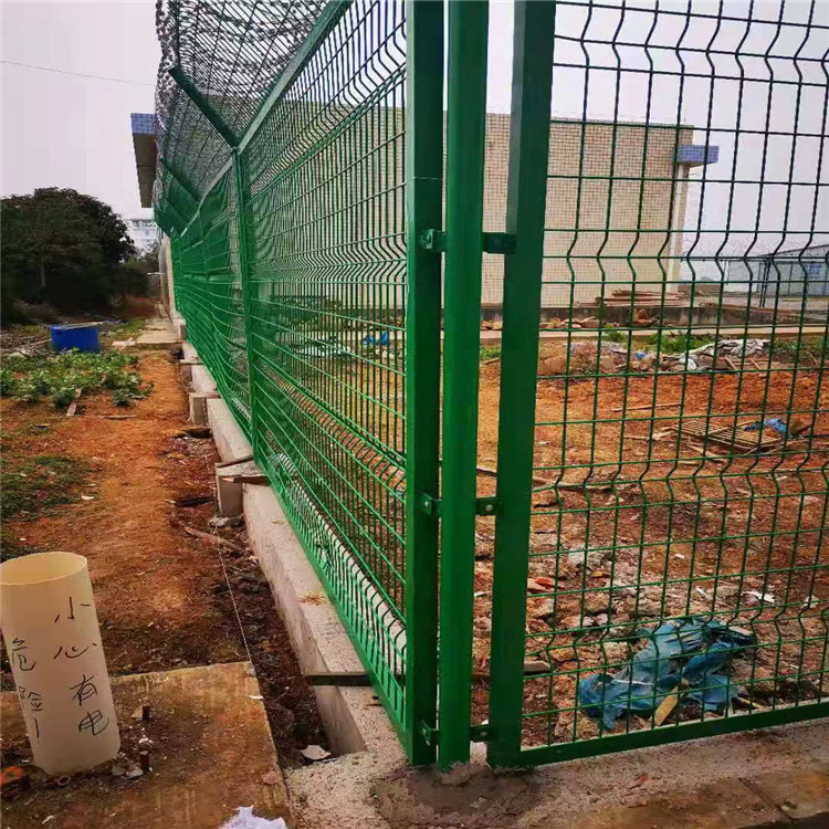 采用Y型防攀爬樣式的金屬隔離圍網,Y型安全防御護網,是由V型支架立柱,加強型焊接片網,安全防盜連接件和熱鍍鋅刀片刺籠組成強度和安全防御性很高。近年來,被廣泛應用在機場、海關地等高安全場所。在護欄網頂部加裝刀片刺絲、刀片刺繩后又很好的增強了安全防護性能。采用電鍍、熱鍍、噴塑、浸塑等防腐形式,具有很好的抗老化、抗曬、耐候等特點。其產品造型美觀、花色多樣,既起到圍欄作用,又起到美化作用。由于具有安全性高、防攀爬能力好,網片連接方式采用特制SBS緊扣件,有效防止人為的破壞性拆卸,橫向四道折彎加強筋,使網面強度顯著增加。