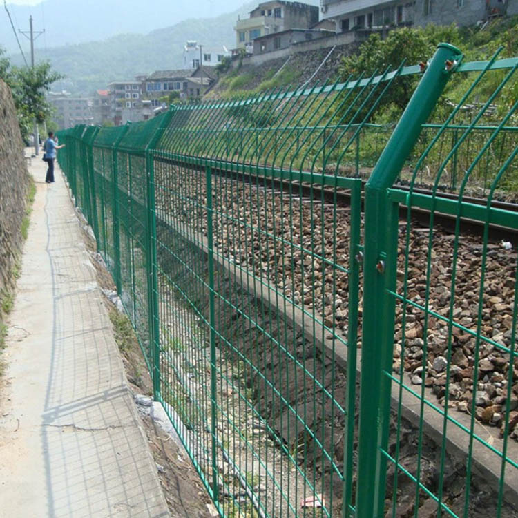鐵路護欄網(wǎng)又叫鐵路隔離柵是重要的交通基礎設施,所以在安全性與實用性的要求上更加的嚴格。整個鐵路封閉網(wǎng)采用優(yōu)質低碳鋼絲或不銹鋼絲編焊而成,其大致結構可分為立柱+邊框,連接方式可以通過連接件連接,也可以用網(wǎng)片直接與立柱卡接、螺栓連接和連接件鉚接,角度可任意調(diào)整。