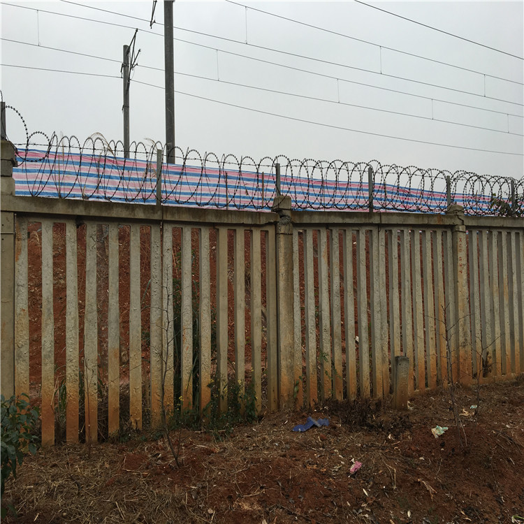 2、高鐵刺絲滾籠安裝前提是,鐵路線路的水泥防護(hù)柵欄安裝完畢時(shí)即可開始安裝高鐵刺絲滾籠,一般在水泥防護(hù)柵欄的基礎(chǔ)上加高0.5米的高鐵刺絲滾籠以增強(qiáng)防護(hù)能力。一般刺絲滾籠先安裝支架和加密支架后開始縱向拉筋和刺絲滾籠的安裝。安裝時(shí)需帶防割手套以防止手被割傷。