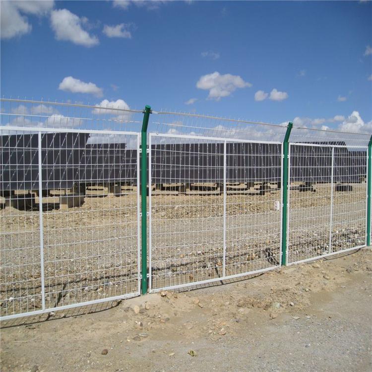 將框架護欄網的網片和立柱靠螺絲和各類特殊的塑料或鐵的卡子連接。所有的螺絲均為自動防盜的。所用配件也可以按照客戶的具體要求來設計。 光伏電站圍欄網,邊框隔離防護網常見的規格: 材 料:低碳鋼絲 表面處理:電鍍、熱鍍、噴塑、浸塑(顏色包括:草綠、深綠、深藍、乳白、橘黃、大紅、褐紅、炭黑、 中灰等顏色可以任選,或搭配混合)