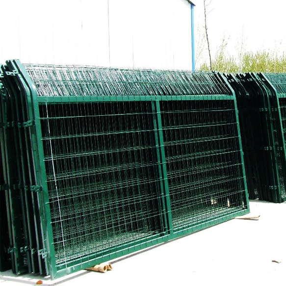 金屬網片及柵欄門的網片成形后應整體鍍鋅并進行熱浸塑(或噴塑)處理,鍍鋅量270g/m2,浸塑厚度0.8mm~1.2mm,顏色選用墨綠色。涂層應均勻,顏色一致,表面光滑,無流柱,滴瘤、粉泡、漏鐵等缺陷。