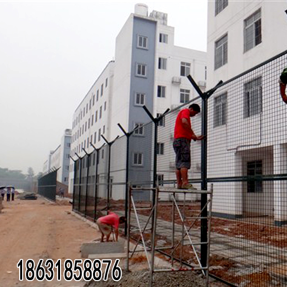 監(jiān)獄金屬網(wǎng)鋼網(wǎng)墻,顧名思義就是用在監(jiān)獄的鋼網(wǎng)墻,起安全隔離防護(hù)的作用,其結(jié)構(gòu)是由一般采用2米高的網(wǎng)片+2.5米高的Y字型立柱+φ500mm或φ600mmr的刀刺網(wǎng),整體下來可達(dá)2.5米左右。因其高度對(duì)犯罪分子起到無法攀爬的作用,起到很好的防護(hù)效果。
